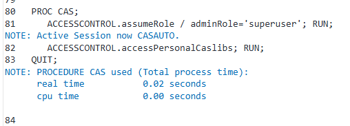 2 ACCESSCONTROL.assumeRole / adminRole='superuser'; RUN;