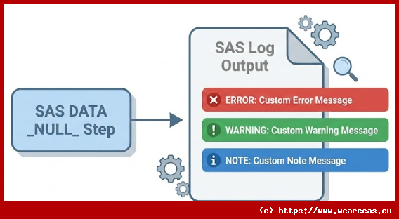 Le secret de ce code réside dans la détection automatique de mots-clés par le système SAS. En commençant explicitement votre chaîne de caractères par "ERROR:", "WARNING:" ou "NOTE:", vous ne faites pas qu'afficher du texte : vous forcez la coloration syntaxique du journal (rouge, vert, bleu) et, plus important encore, vous modifiez le code retour de l'étape. Cela permet à vos ordonnanceurs externes de détecter qu'un problème fonctionnel grave est survenu, même si le code SAS s'est techniquement exécuté sans bug système.